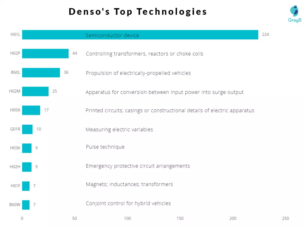 If we dive into the technologies that Toyota transferred to Denso, we found that 80% of patents are falling in the ‘Electrical’ domain. And 50% of patents belong to core semiconductor technology. Below is the full chart: