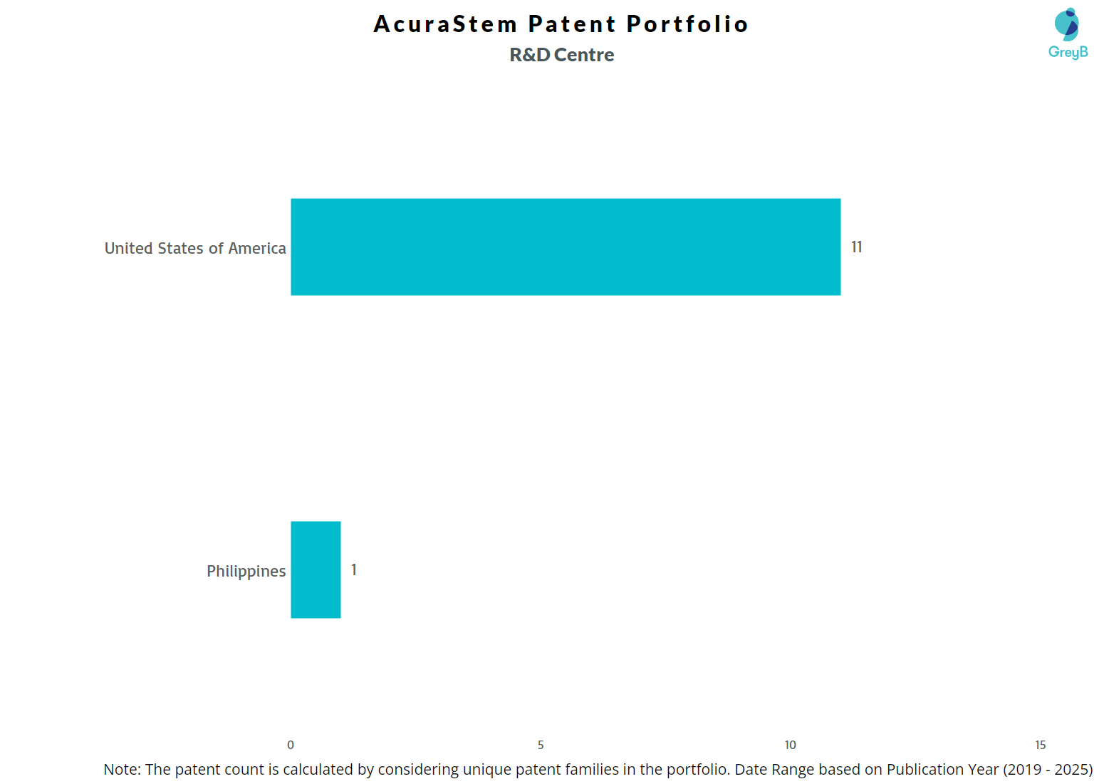 AcuraStem has a total of 77 patents globally. These patents belong to 12 unique patent families. Out of 77 patents, 65 patents are active.