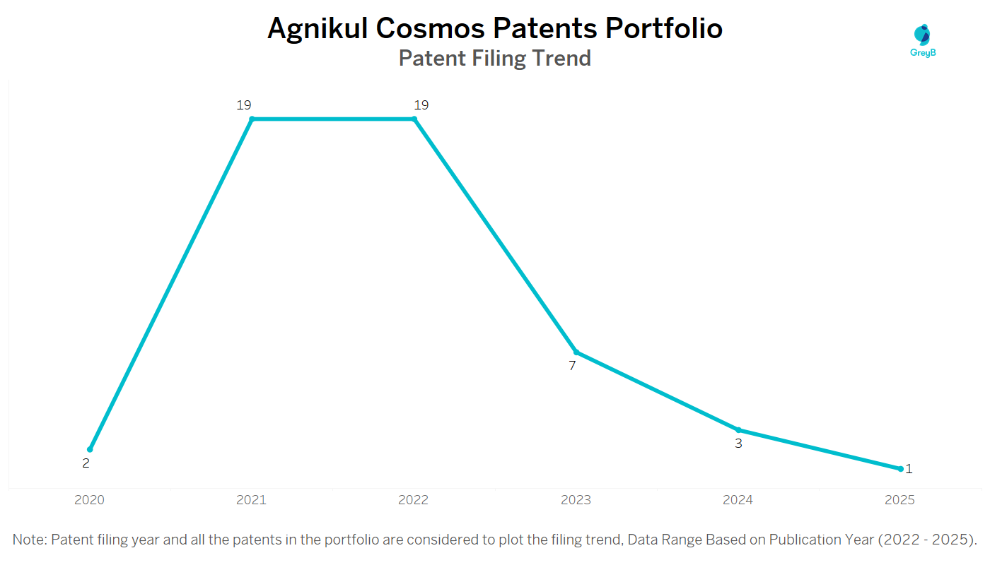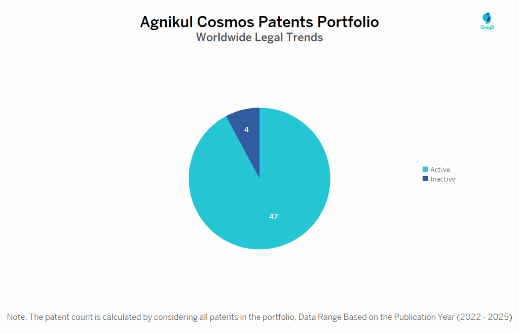 AgniKul Cosmos has a total of 51 patents globally. These patents belong to 6 unique patent families. Out of 51 patents, 47 patents are active.