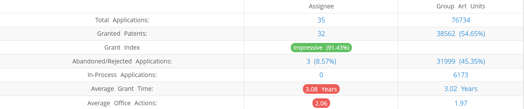 AiCure (Excluding its subsidiaries) has filed 35 patent applications at USPTO so far (Excluding Design and PCT applications). Out of these 32 have been granted leading to a grant rate of 91.43%.
