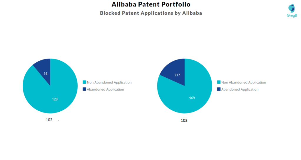| Company | Number of Patent Applications that faced Rejection Citing Alibaba Patents | Number of Rejections (102 & 103) |