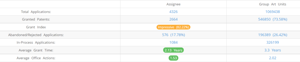 Below are the key stats of Alibaba patent prosecution at the USPTO.