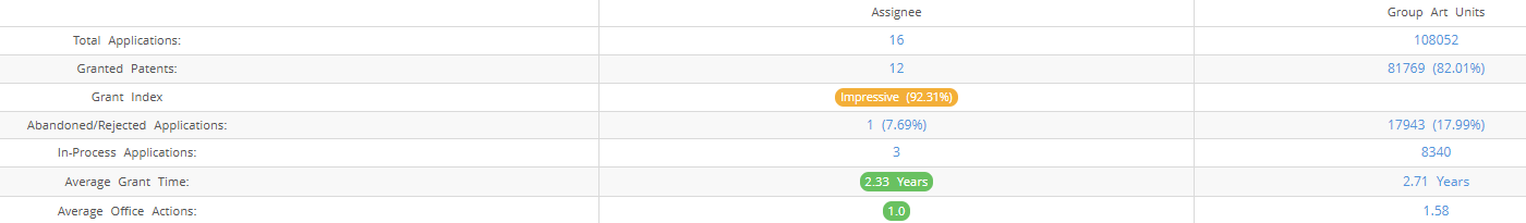 Below are the key stats of AltumView patent prosecution at the USPTO.