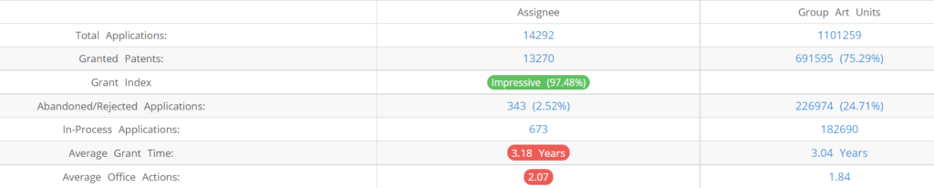 Below are the key stats of Amazon patent prosecution at the USPTO.