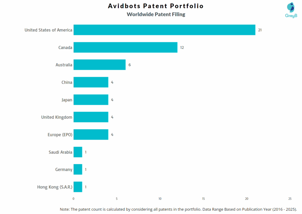 How Many Patents did Avidbots File in Different Countries?
