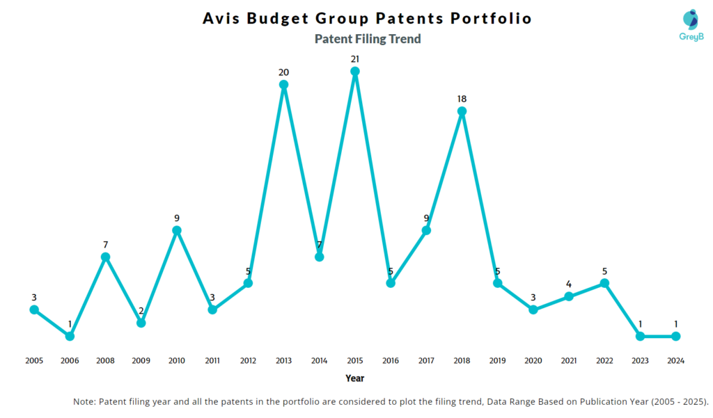 | Year of Patents Filing or Grant | Avis Budget Group Applications Filed | Avis Budget Group Patents Granted |