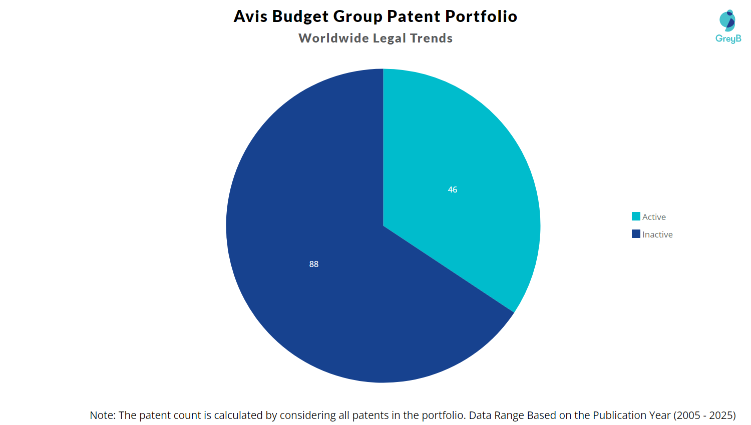 Avis Budget Group has a total of 134 patents globally. These patents belong to 38 unique patent families. Out of 134 patents, 46 patents are active.