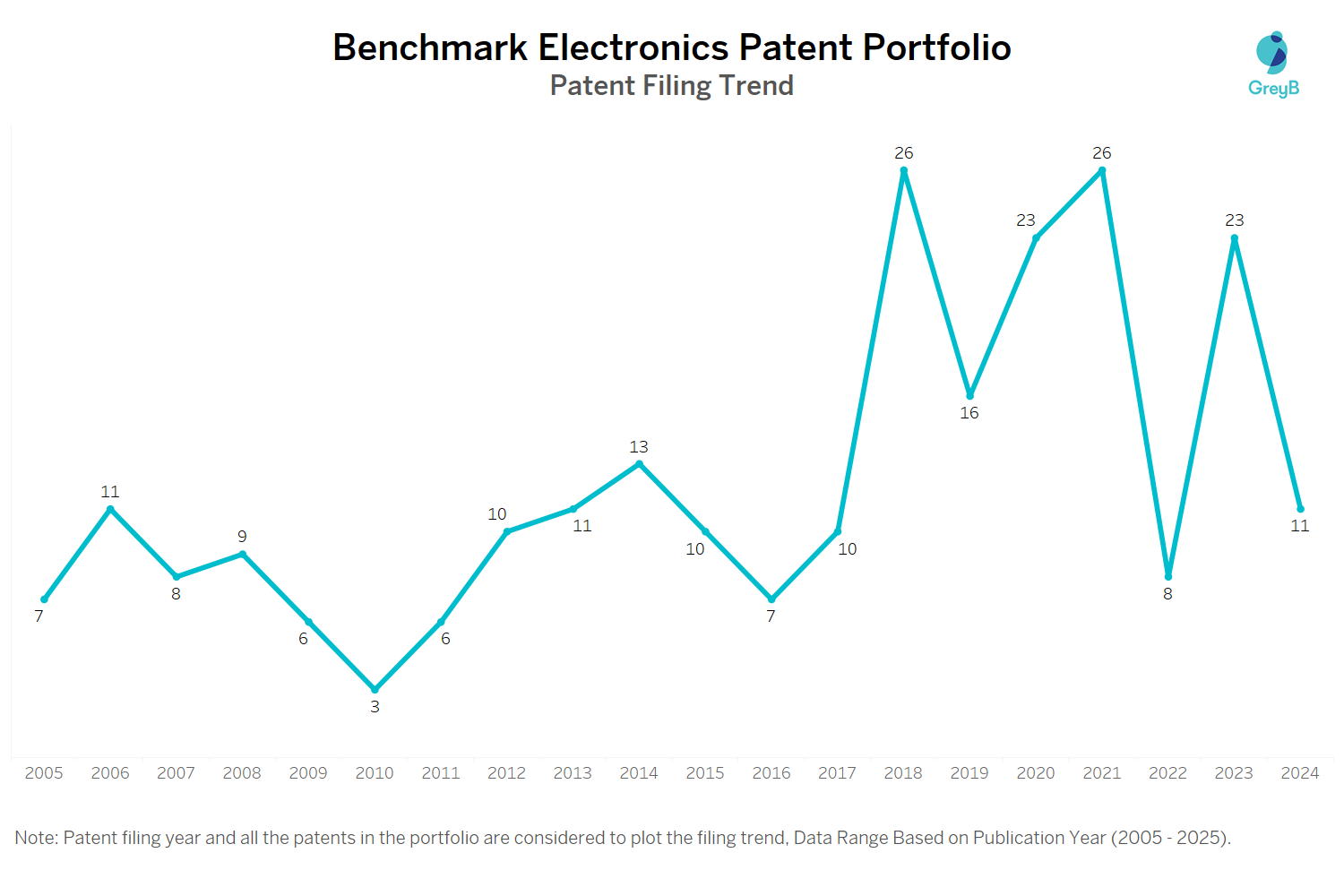 Below are the key stats of Benchmark Electronics patent prosecution at the USPTO.