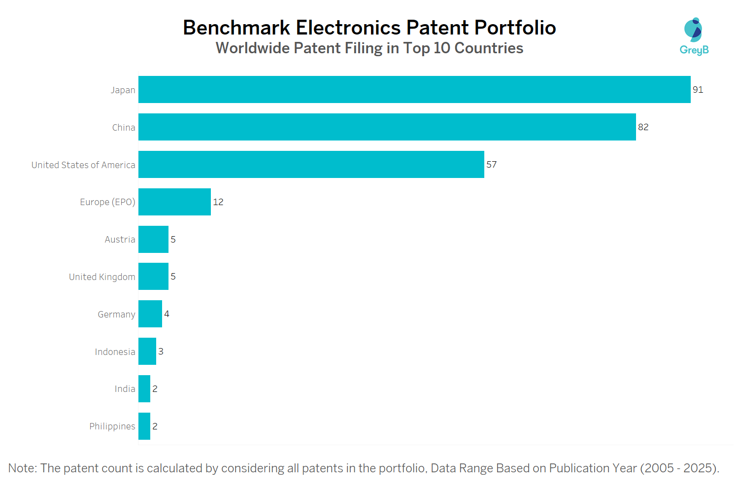 How Many Patents did Benchmark Electronics File in Different Countries?