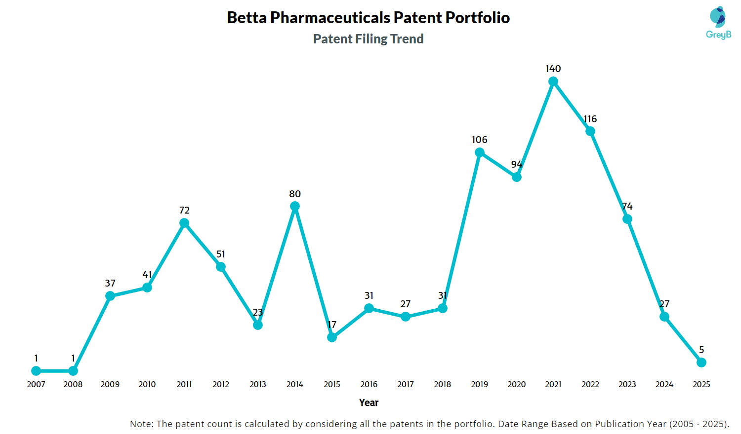 Betta Pharmaceuticals Patent Filing Trend