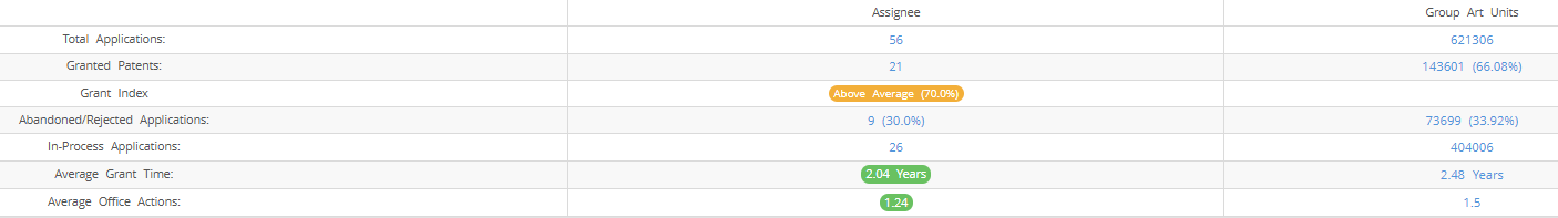 Betta Pharmaceuticals (Excluding its subsidiaries) has filed 56 patent applications at USPTO so far (Excluding Design and PCT applications). Out of these 21 have been granted leading to a grant rate of 70%.