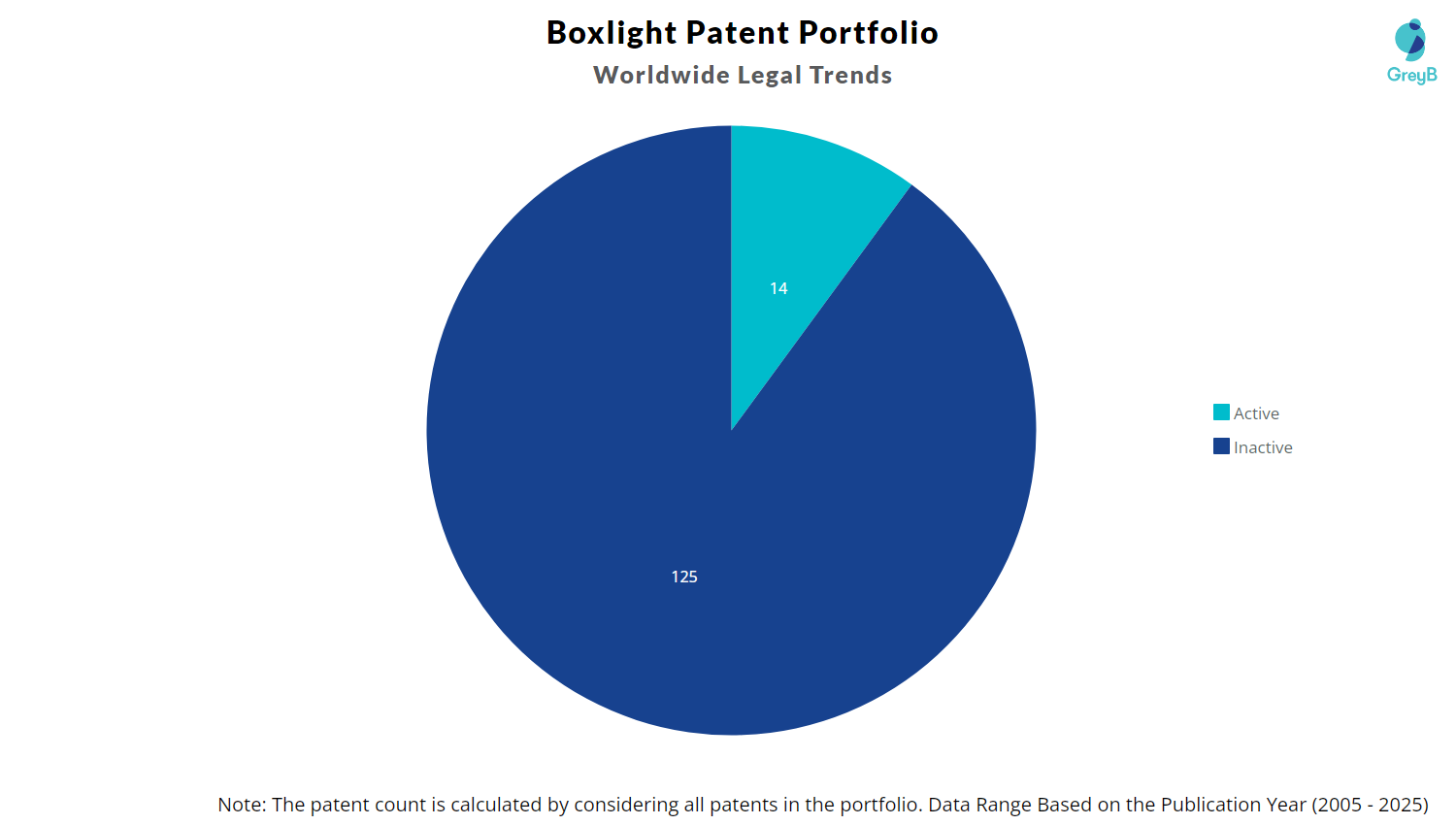 Boxlight has a total of 139 patents globally. These patents belong to 44 unique patent families. Out of 139 patents, 14 patents are active.