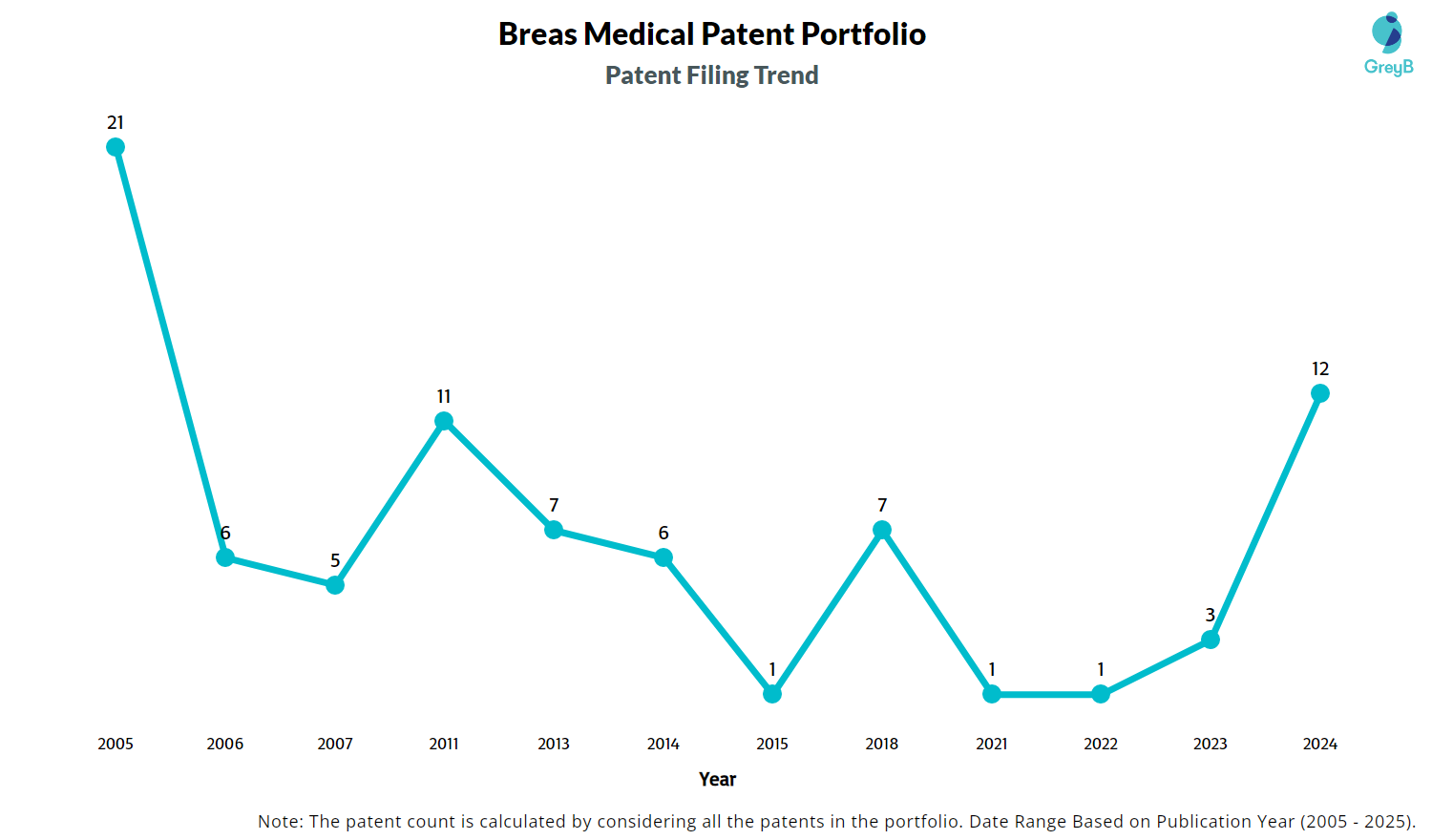 | Year of Patents Filing or Grant | Breas Medical Applications Filed | Breas Medical Patents Granted |