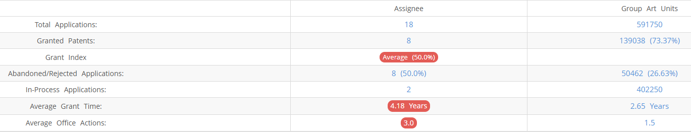 Breas Medical (Excluding its subsidiaries) has filed 18 patent applications at USPTO so far (Excluding Design and PCT applications). Out of these 8 have been granted leading to a grant rate of 50%.