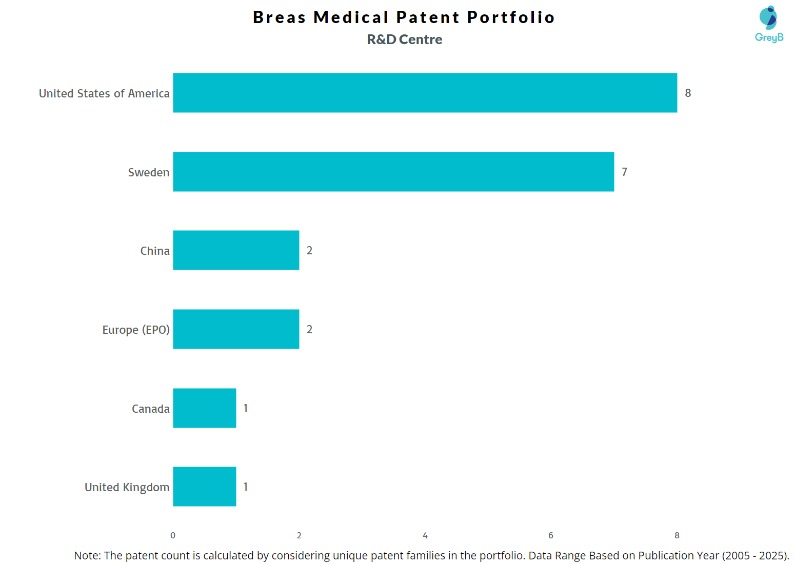 Breas Medical has a total of 85 patents globally. These patents belong to 21 unique patent families. Out of 85 patents, 44 patents are active.