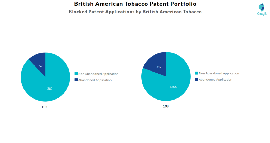 | Company | Number of Patent Applications that faced Rejection Citing British American Tobacco Patents | Number of Rejections (102 & 103) |