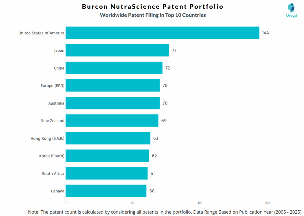 Burcon NutraScience has a total of 1206 patents globally. These patents belong to 72 unique patent families. Out of 1206 patents, 262 patents are active.