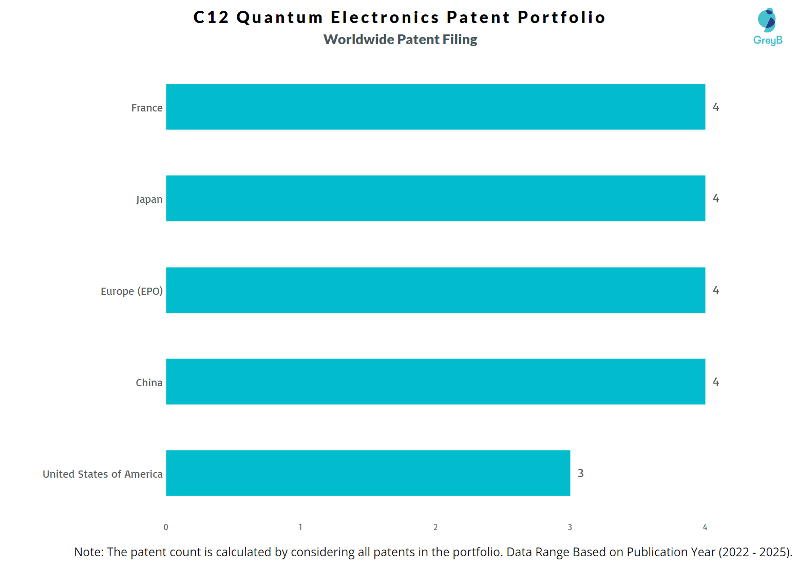 How Many Patents did C12 Quantum Electronics File in Different Countries?