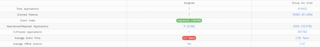 C12 Quantum Electronics (Excluding its subsidiaries) has filed 2 patent applications at USPTO so far (Excluding Design and PCT applications). Out of these 1 have been granted leading to a grant rate of 100%.