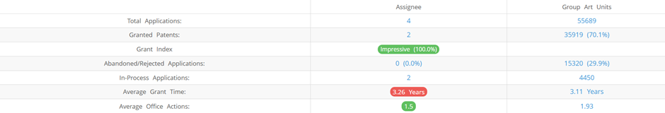 Cheniere Energy (Excluding its subsidiaries) has filed 4 patent applications at USPTO so far (Excluding Design and PCT applications). Out of these 2 have been granted leading to a grant rate of 100.0%.