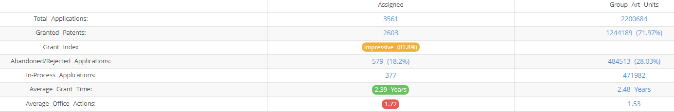 Below are the key stats of Colgate Palmolive patent prosecution at the USPTO.