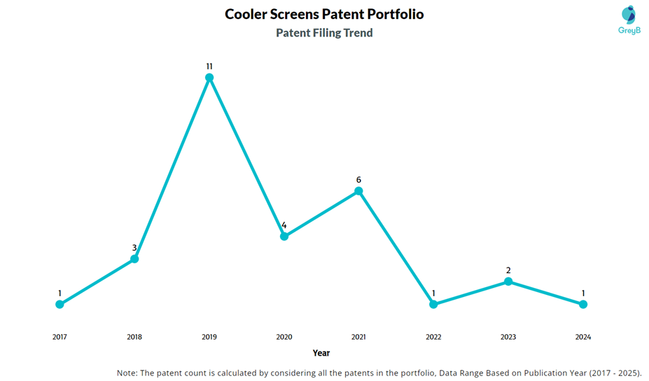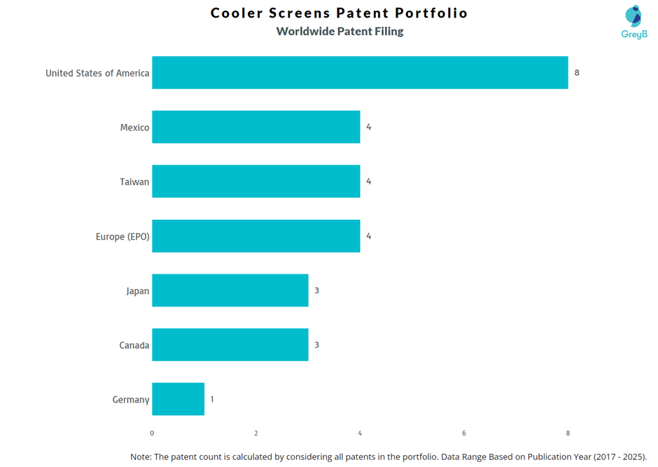 Do read about some of the most popular patents of Cooler Screens which have been covered by us in this article and also you can find Cooler Screens patents information, the worldwide patent filing activity and its patent filing trend over the years, and many other stats over Cooler Screens patent portfolio.