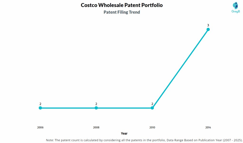 | Year of Patents Filing or Grant | Costco Wholesale Applications Filed | Costco Wholesale Patents Granted |