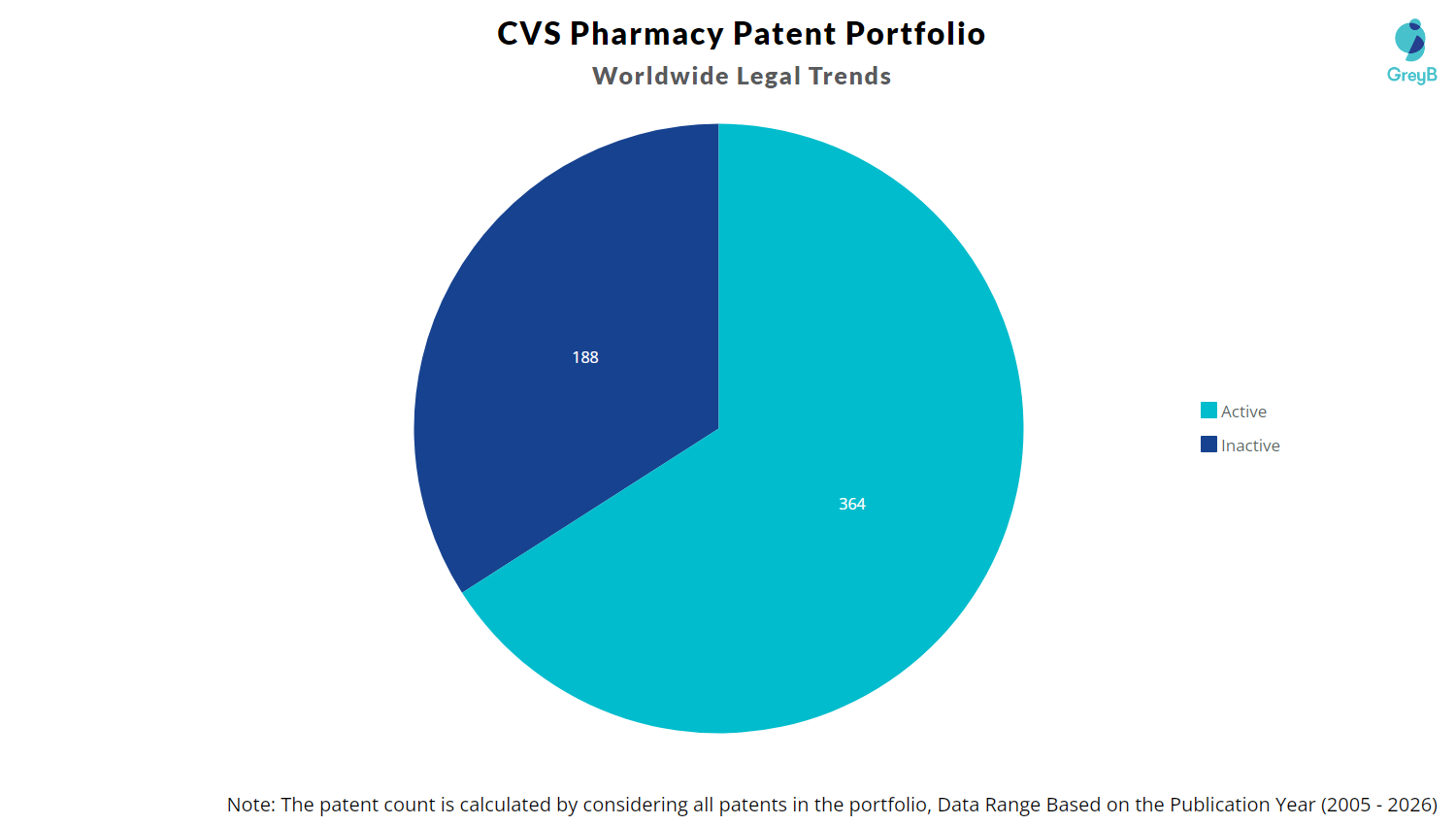 CVS Pharmacy has a total of 552 patents globally. These patents belong to 252 unique patent families. Out of 552 patents, 364 patents are active.