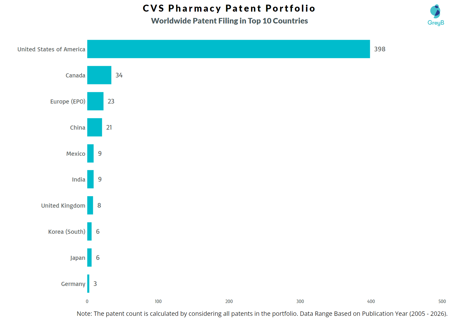 How Many Patents did CVS Pharmacy File in Different Countries?