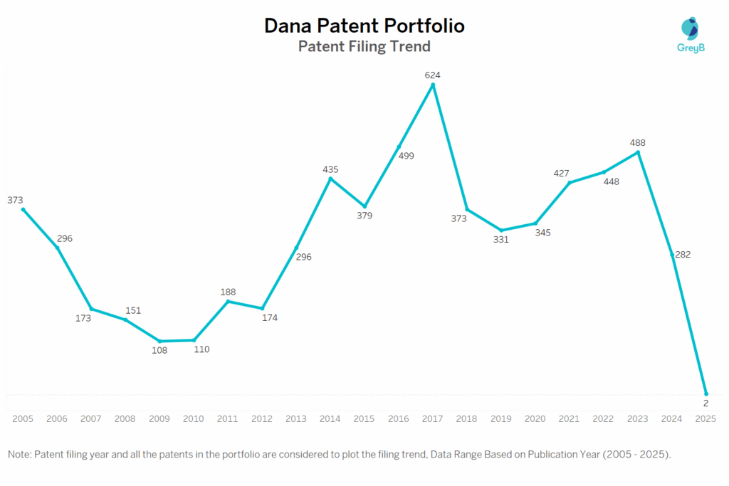 | Year of Patents Filing or Grant | Dana Applications Filed | Dana Patents Granted |