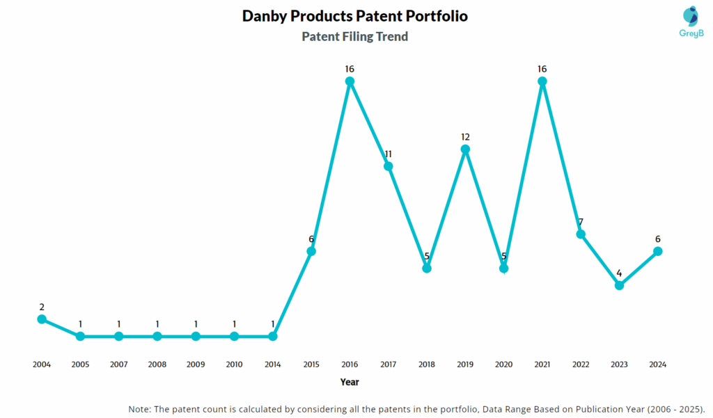 Below are the key stats of Danby Products patent prosecution at the USPTO.