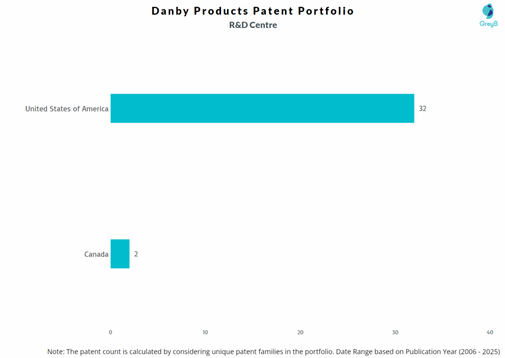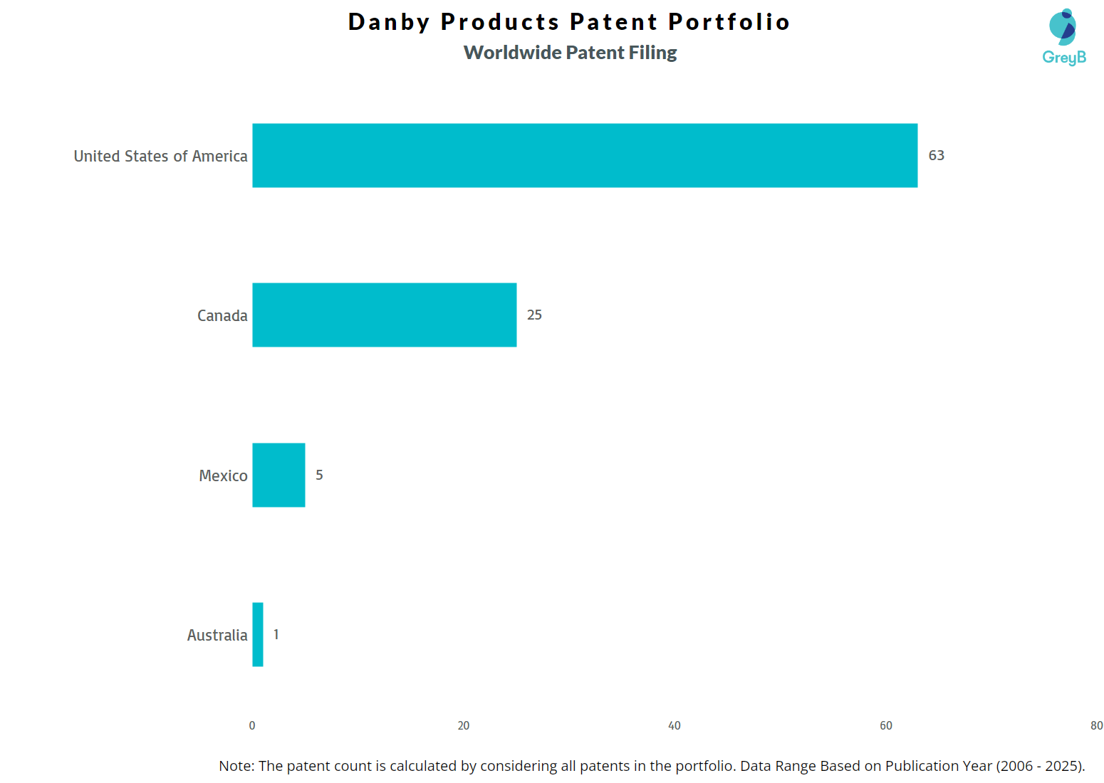 Danby Products has a total of 96 patents globally, out of which 76 have been granted. Of these 96 patents, more than 89% patents are active. United States of America is where Danby Products has filed the maximum number of patents, followed by Canada and Mexico. Parallelly, United States of America seems to be the main focused R&D centre and Canada is the origin country of Danby Products.