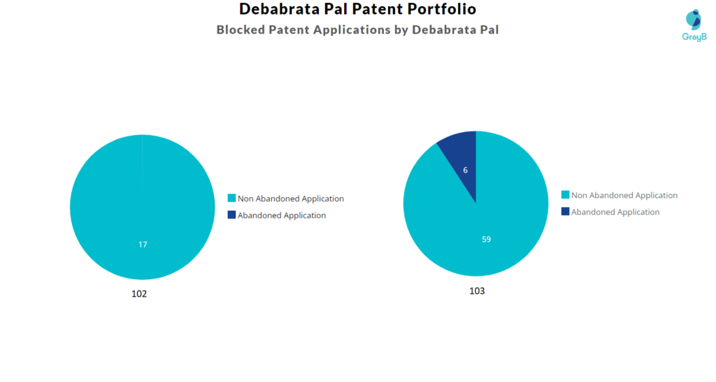 Count of 102 and 103 Type Rejections based on Debabrata Pal Patents