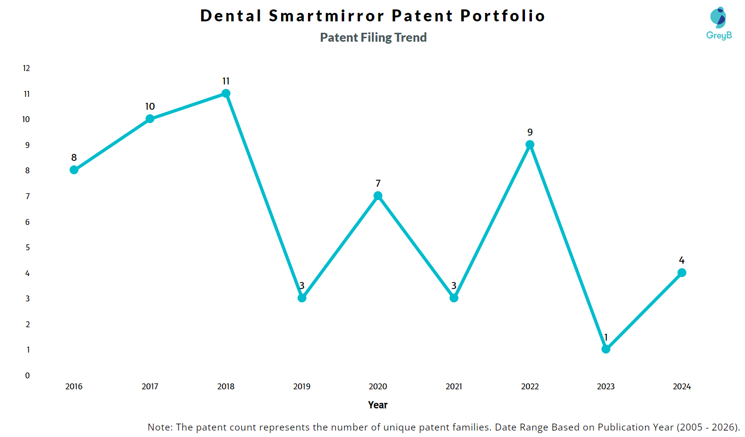 Year of Patents Filing or GrantDental Smartmirror Applications FiledDental Smartmirror Patents Granted