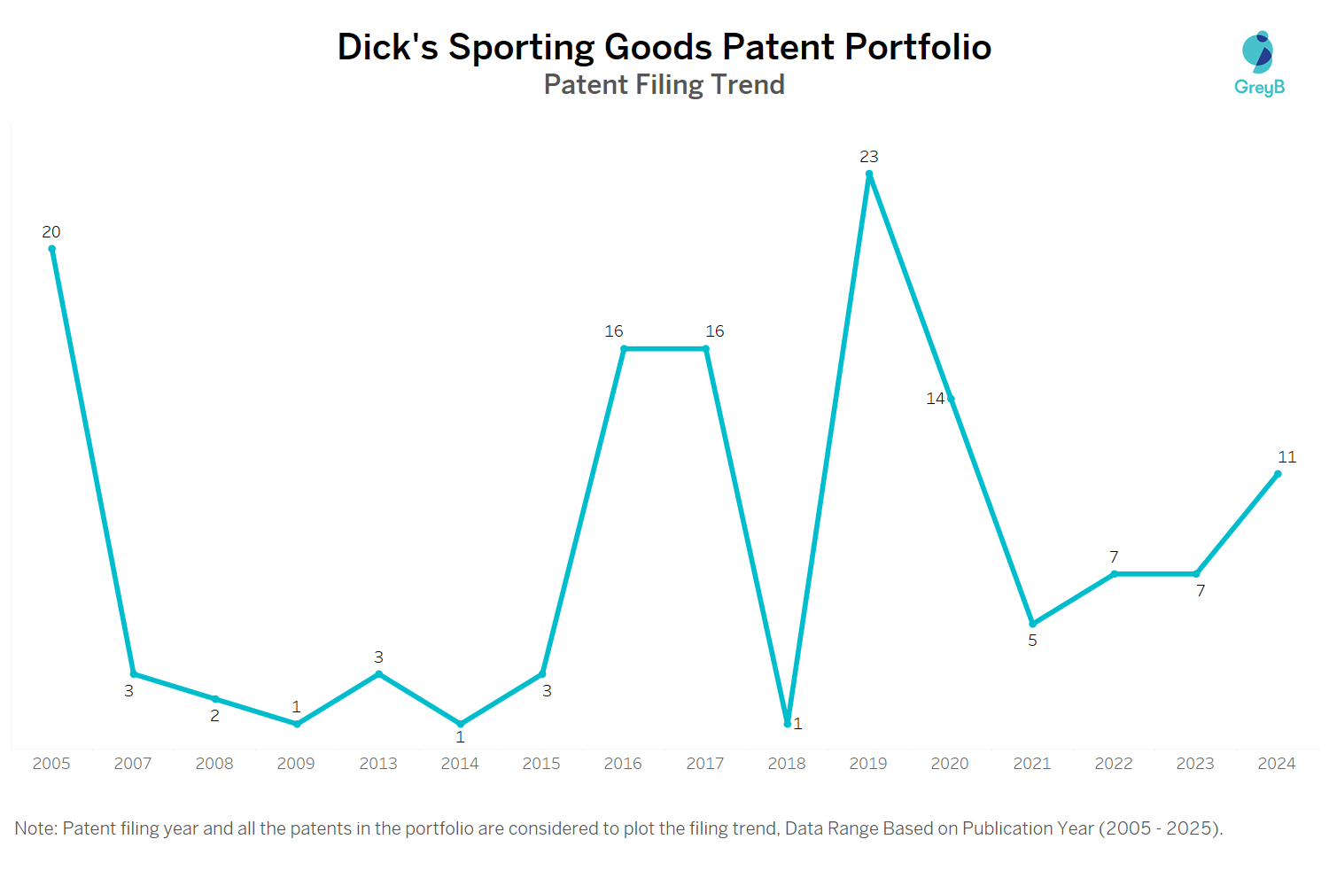 How Many Patents did Dick’s Sporting Goods File Every Year?