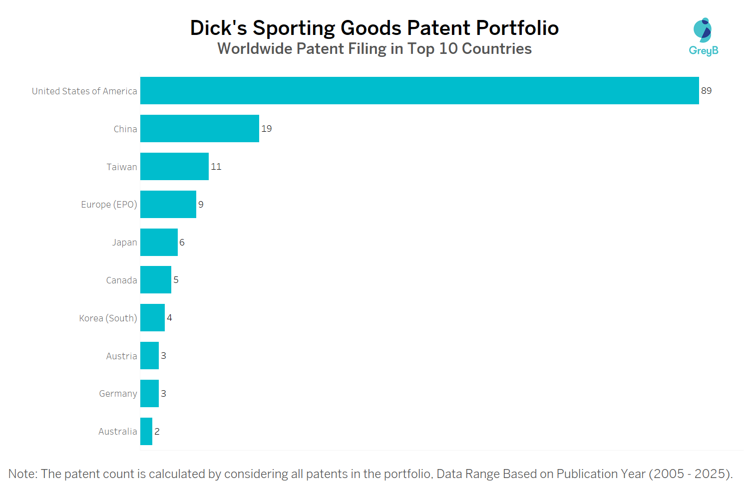 How Many Patents did Dick’s Sporting Goods File in Different Countries?