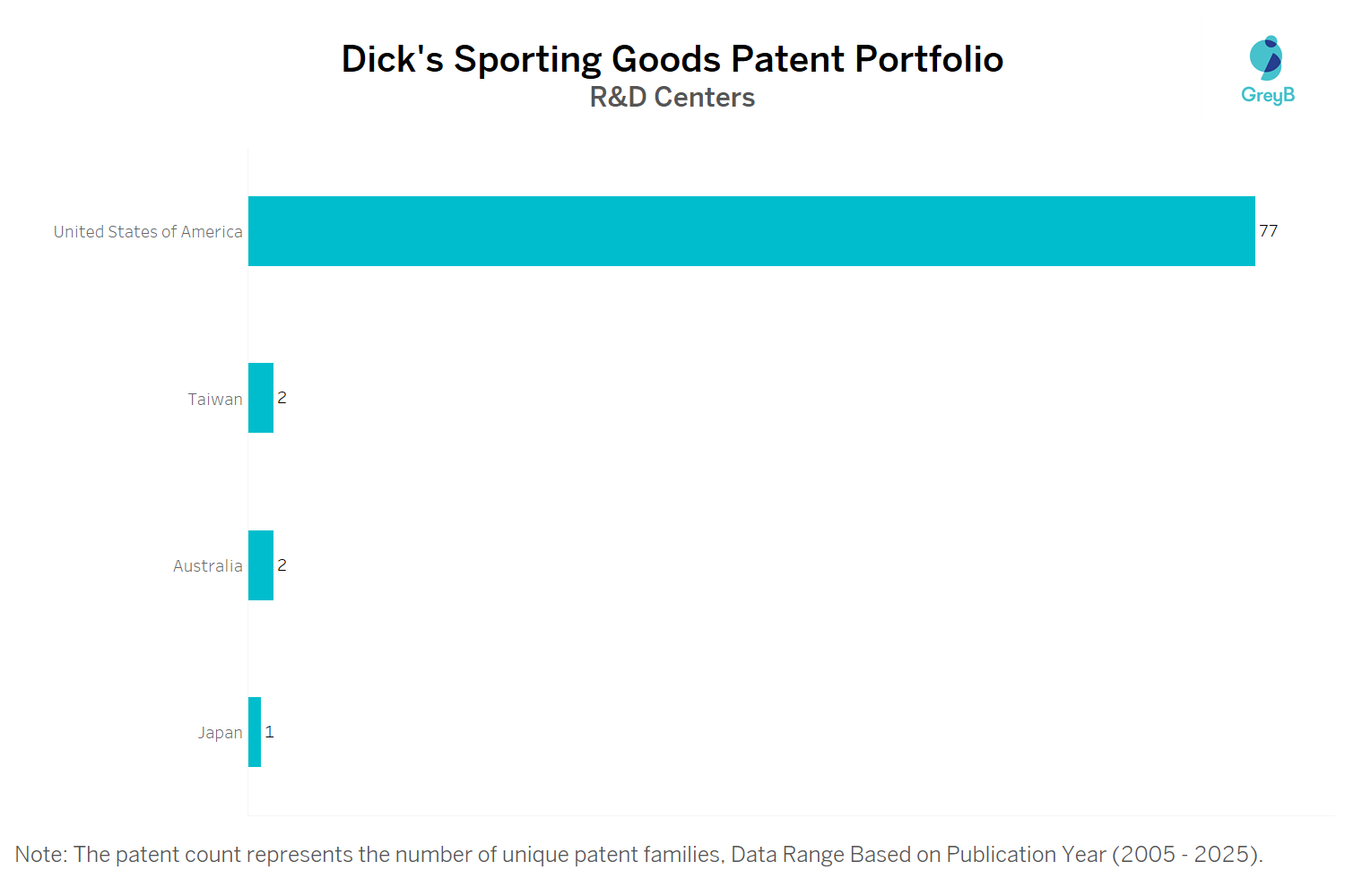 Where are Research Centres of Dick’s Sporting Goods Patents Located?