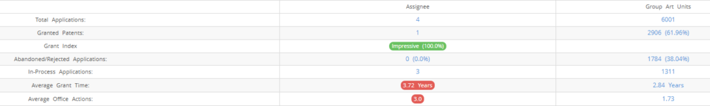 Diet4life (Excluding its subsidiaries) has filed 4 patent applications at USPTO so far (Excluding Design and PCT applications). Out of these 1 have been granted leading to a grant rate of 100%.