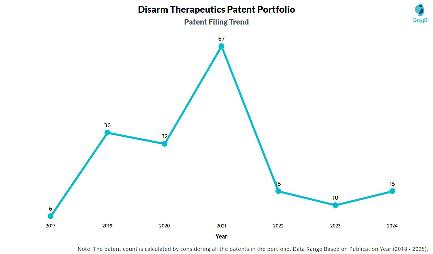 Do read about some of the most popular patents of Disarm Therapeutics which have been covered by us in this article and also you can find Disarm Therapeutics patents information, the worldwide patent filing activity and its patent filing trend over the years, and many other stats over Disarm Therapeutics patent portfolio.