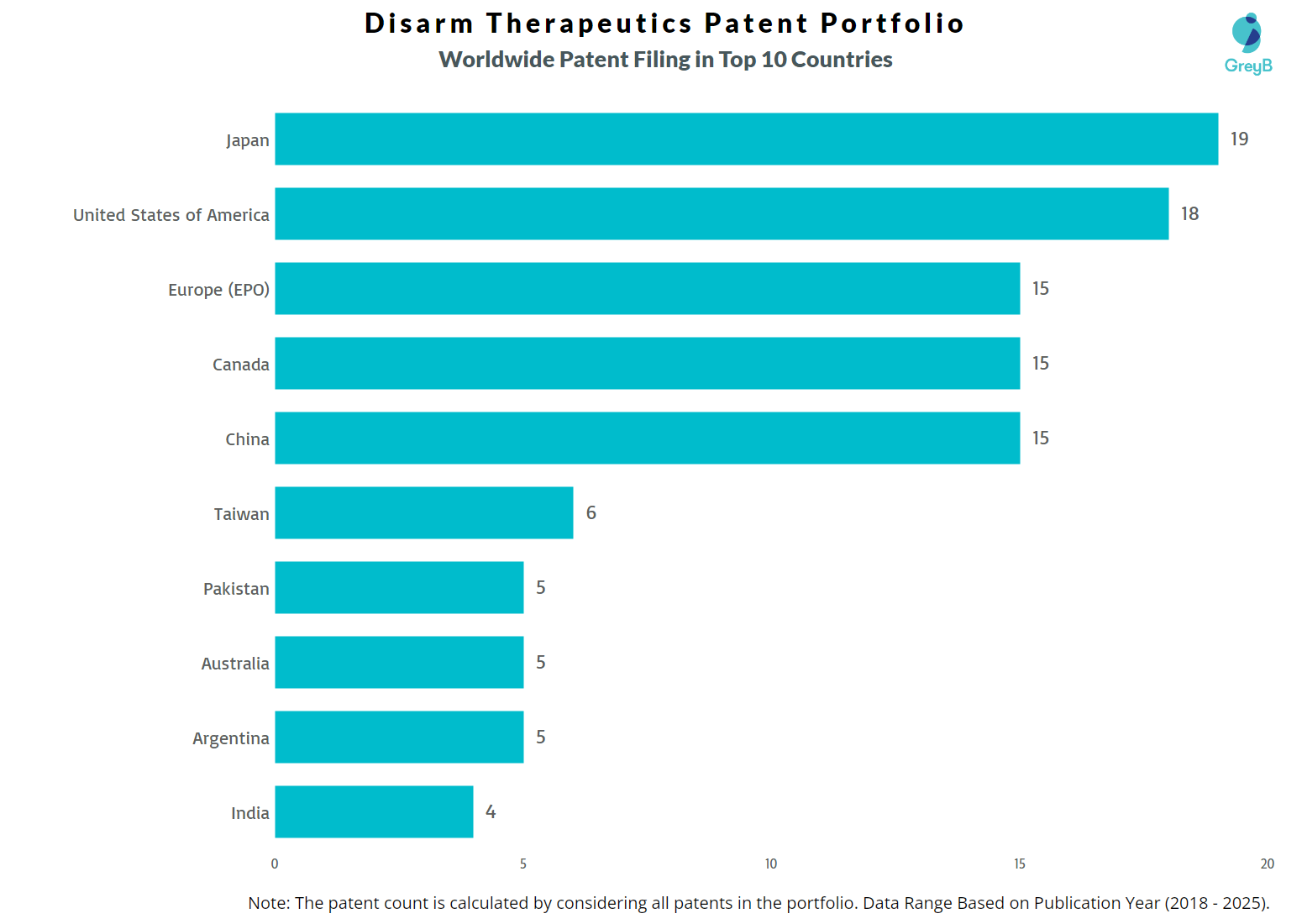 How Many Patents did Disarm Therapeutics File in Different Countries?