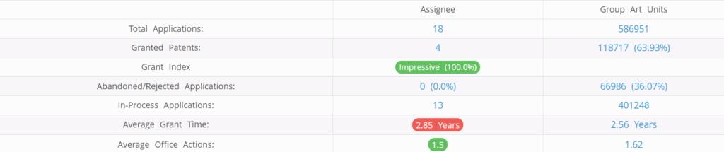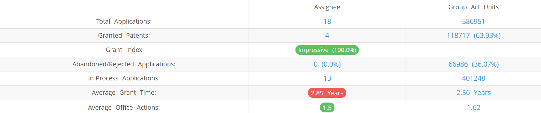 Disarm Therapeutics (Excluding its subsidiaries) has filed 18 patent applications at USPTO so far (Excluding Design and PCT applications). Out of these 4 have been granted leading to a grant rate of 100.0%.