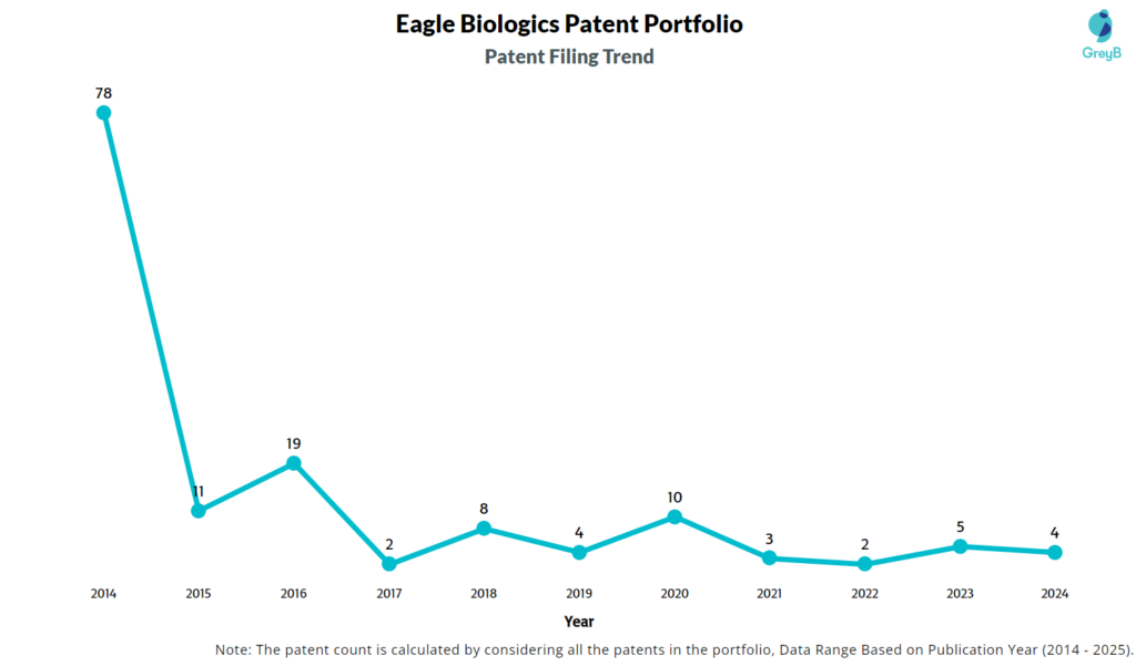 Below are the key stats of Eagle Biologics’ patent prosecution at the USPTO.
