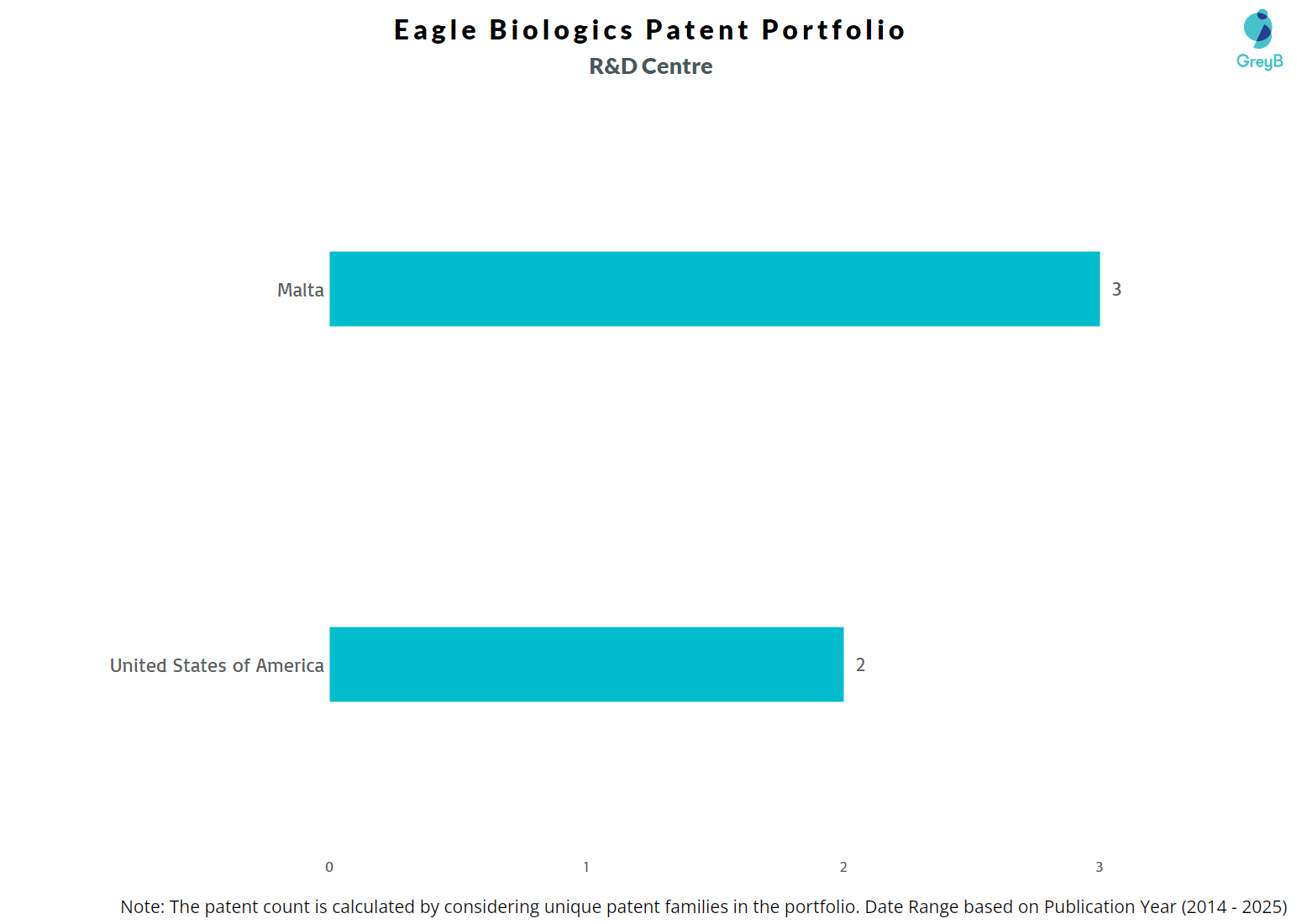 Eagle Biologics has a total of 146 patents globally, out of which 104 have been granted. Of these 146 patents, more than 97% patents are active. Hong Kong (S.A.R.) is where Eagle Biologics has filed the maximum number of patents, followed by United States of America and Japan. Parallelly, Malta seems to be the main focused R&D centre and also USA is the origin country of Eagle Biologics.