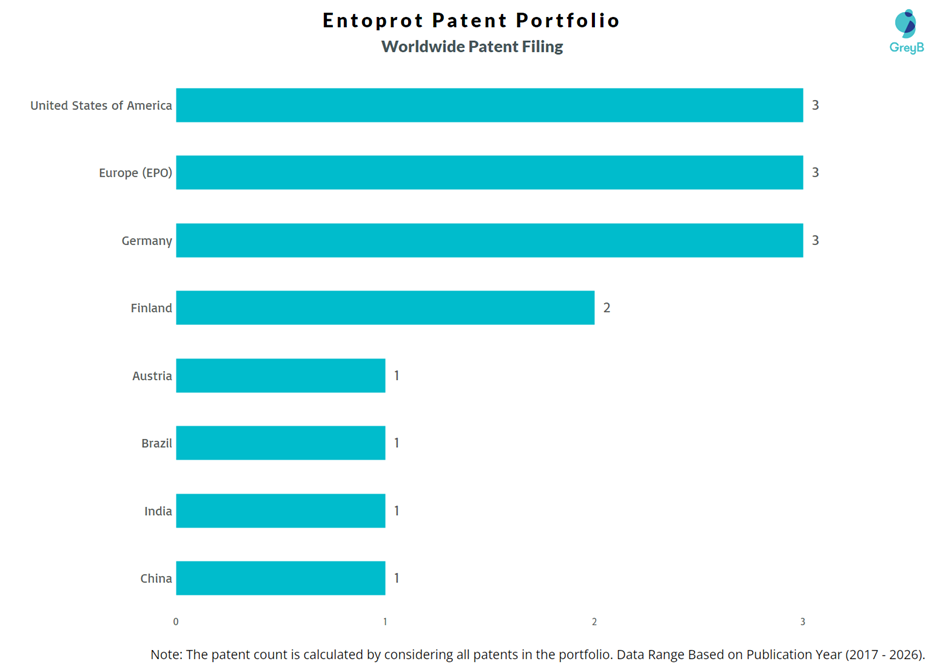Entoprot has a total of 18 patents globally. These patents belong to 3 unique patent families. Out of 18 patents, 15 patents are active.