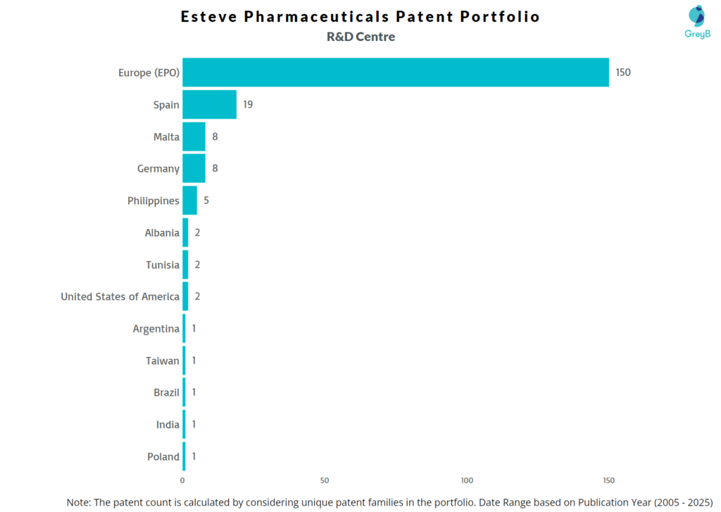 How Many Patents did Esteve Pharmaceuticals File in Different Countries?