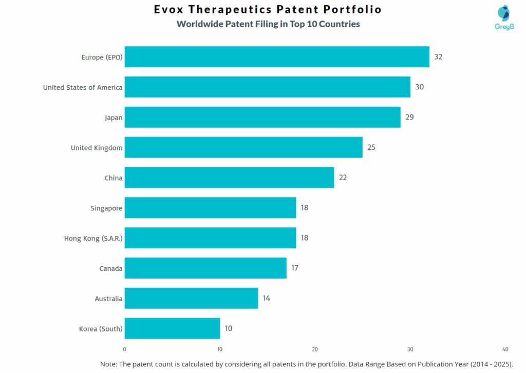 How Many Patents did Evox Therapeutics File in Different Countries?