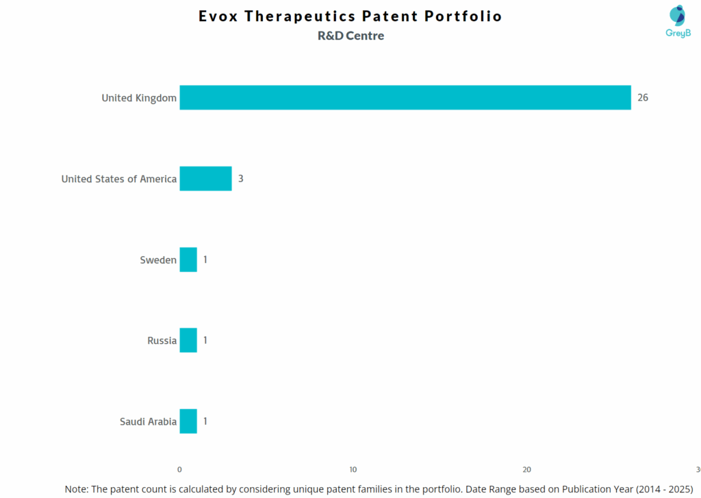 Where are Research Centres of Evox Therapeutics Patents Located?