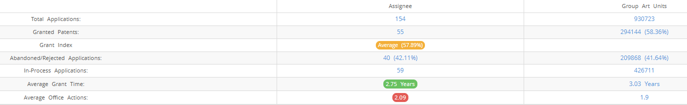 Flagship Pioneering (Excluding its subsidiaries) has filed 154 patent applications at USPTO so far (Excluding Design and PCT applications). Out of these 55 have been granted leading to a grant rate of 57.89%.