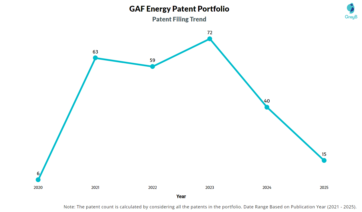 GAF Energy has a total of 255 patents globally. These patents belong to 71 unique patent families. Out of 255 patents, 202 patents are active.