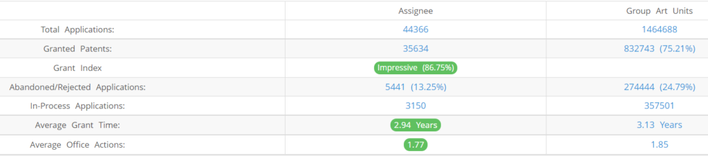 Below are the key stats of Google patent prosecution at the USPTO.